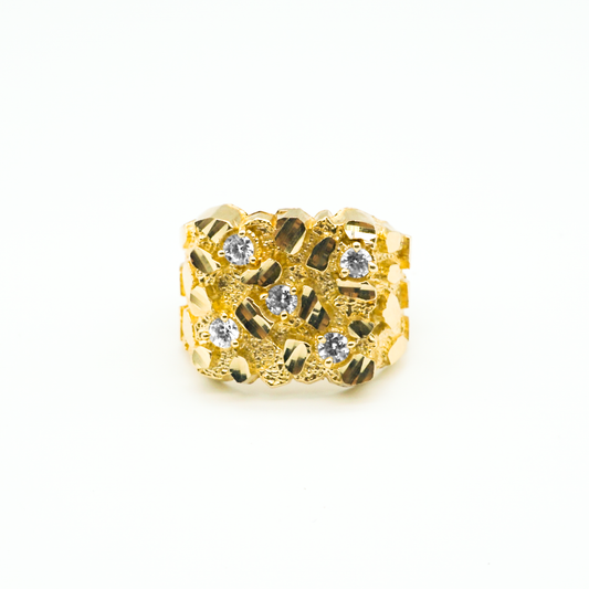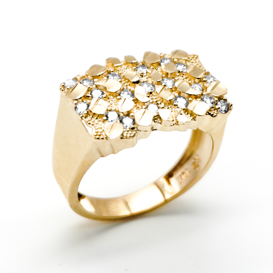 Anillo tipo nugget con zirconias | 10k | 7.5g