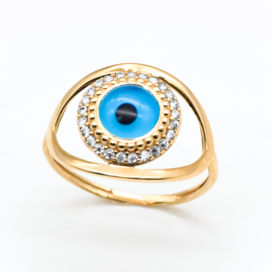 Anillo oro amarillo con zirconias y ojo de cristal | 14k | 1.8g