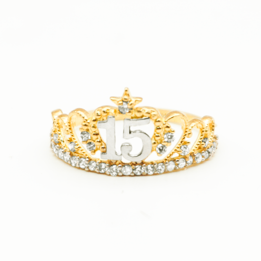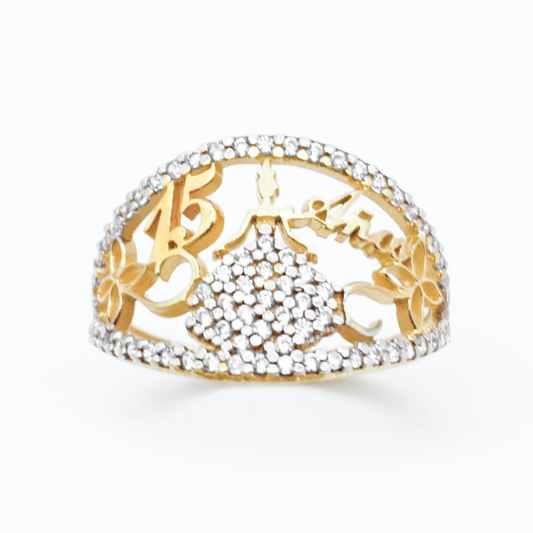 Anillo XV Años Oro amarillo con zirconias | 10k | 2g
