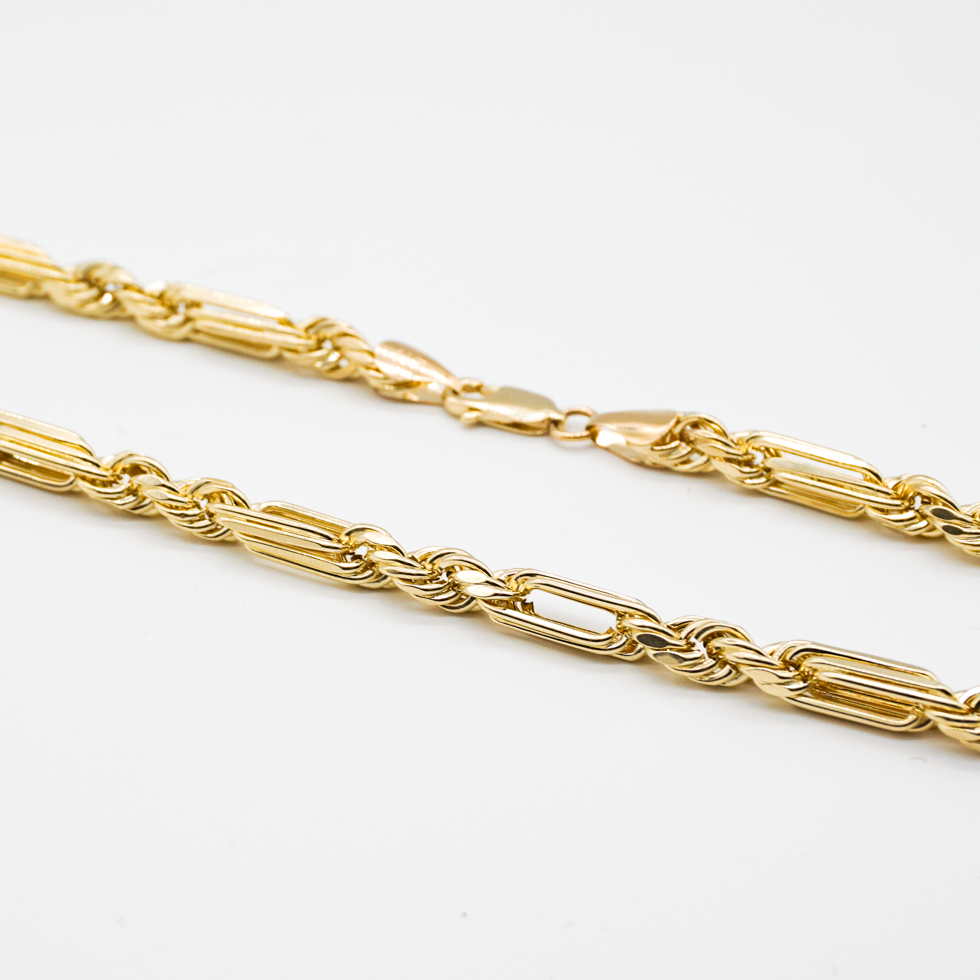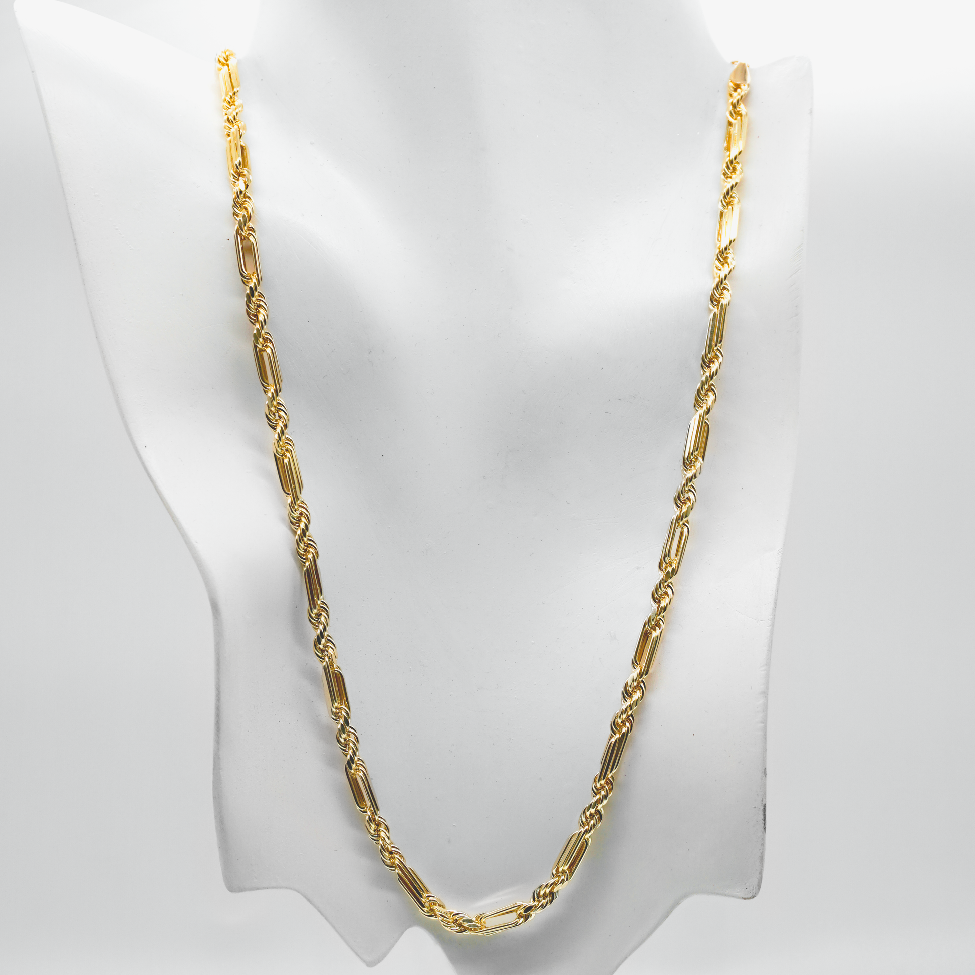 Cadena de eslabones tipo cuerda y figaro combinados. Un diseño clásico y elegante que añade un toque de lujo a tu estilo. ¡Ideal para complementar cualquier atuendo!